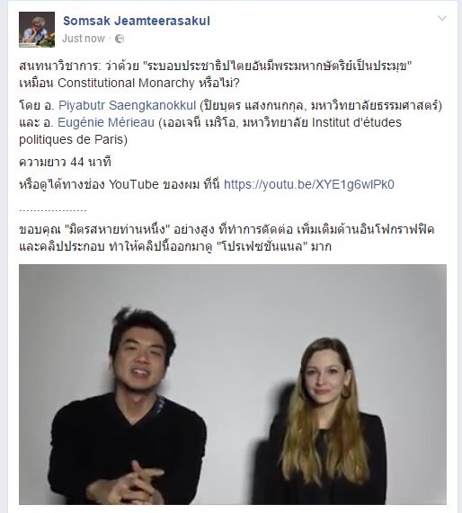 สนทนาวิชาการ "ระบอบ ปชต อันมีพระมหากษัตริย์เป็นประมุข" กับ Constitutional Monarchy - คลิกฟัง- http://goo.gl/6nhrNl