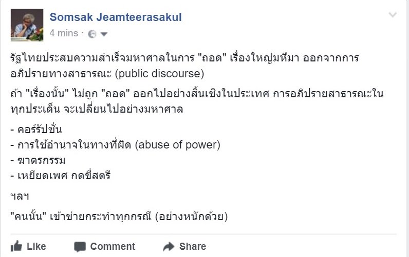 รัฐไทยประสบความสำเร็จมหาศาลในการ "ถอด" เรื่องใหญ่มหึมา ออกจากการอภิปรายทางสาธารณะ (public discourse) .....