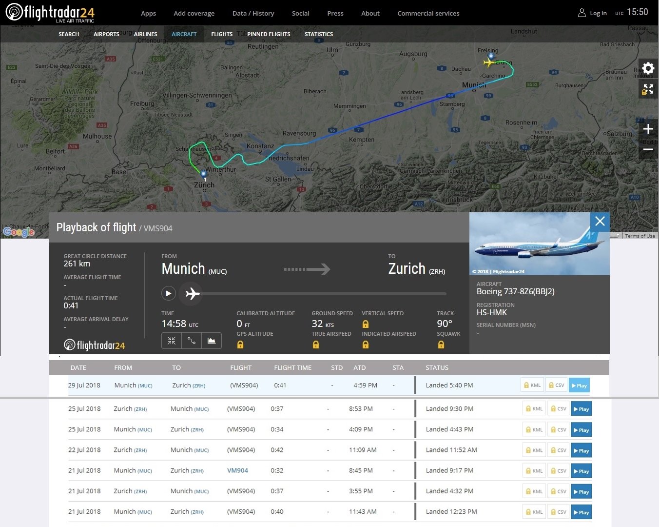 ผมถือโอกาส เอาบันทึกการบินไม่กี่วันก่อนหน้ามาไทยให้ดูด้วย จะเห็นว่า เขาบินไป-มา มิวนิค-ซูริค 2-3 ครั้ง บางครั้งก็ค้างคืน
