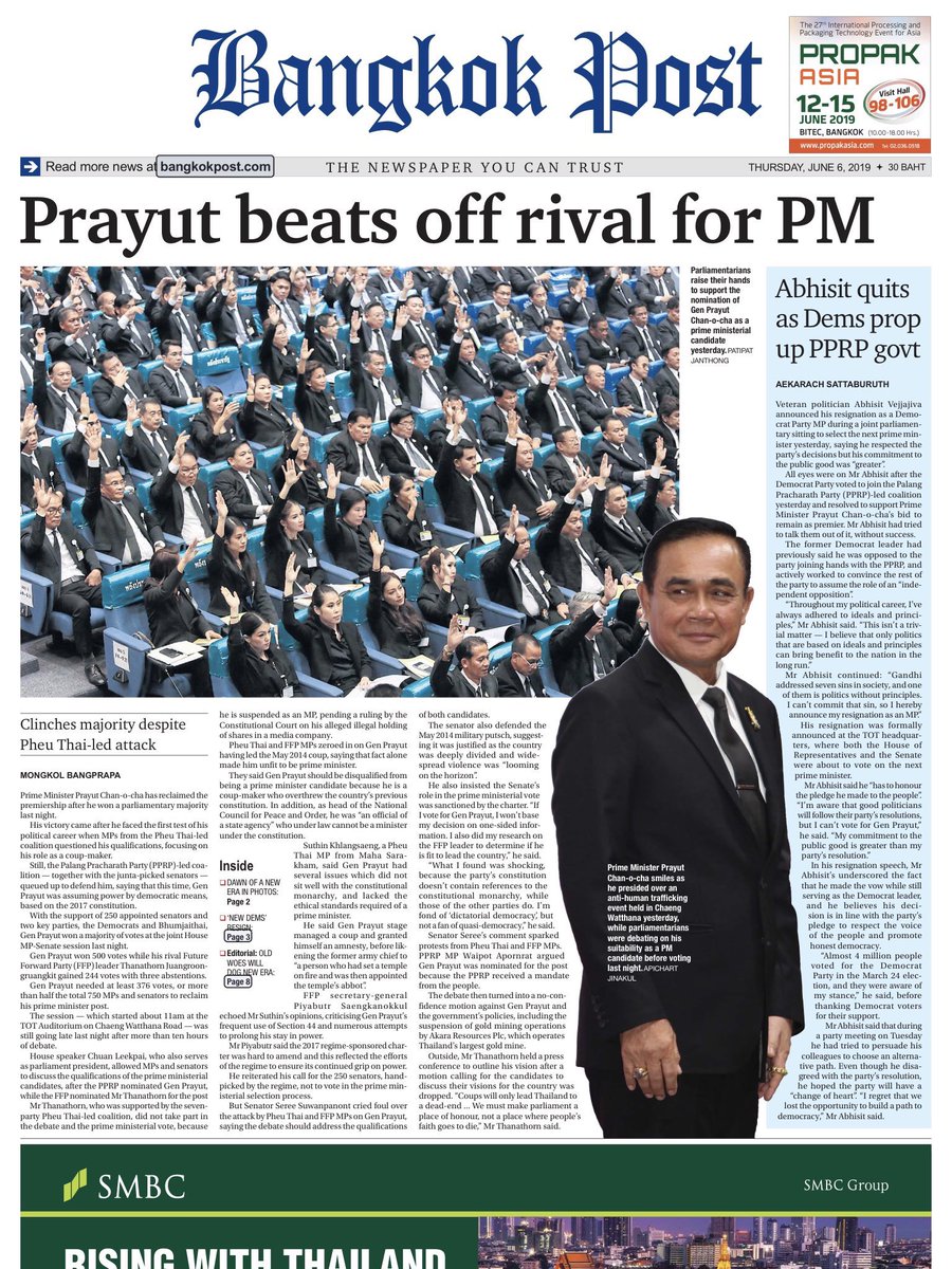 A brave — and accurate — verdict from @KhaosodEnglish on the "election" of dictator Prayuth Chan-ocha as prime minister of Thailand