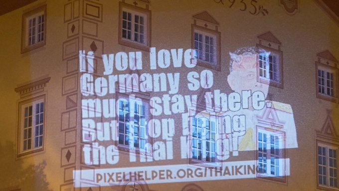 กลุ่ม Pixel/HELPER ของเยอรมัน ไปส่องไฟและส่งเสียงที่ห้องพักวชิราลงกรณ์อีก