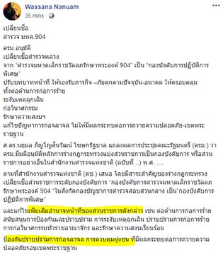 เปลี่ยนชื่อ “ตำรวจมหาดเล็กราชวัลลภรักษาพระองค์ 904” เป็น “กองบังคับการปฏิบัติการพิเศษ” พร้อมกันนั้น ได้เพิ่มอำนาจในการควบคุมฝูงชนให้กับหน่วยดังกล่าว และอนุมัติงบประมาณเช่ารถใหม่คันละ 15 ล้านบาทให้หน่วยดังกล่าว 14 คัน