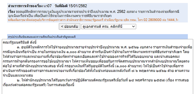 ปีกลาย ค่าใช้จ่ายงานพระบรมราชาภิเษก เฉพาะงบกลางวันที่ 4-6 พฤษภาคม 2562 เป็นจำนวน 1,000 ล้านบาท (หนึ่งพันล้านบาท)