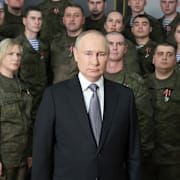 Standing in front of a group of soldiers - instead of in the Kremlin, as he usually does - Putin repeated his usual accusations of Ukrainian "neo-Nazis" and a Western world whose goal is to "destroy Russia".