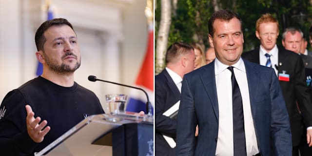 Volodymyr Zelenskyi and Dmitry Medvedev. AP