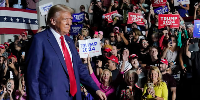 Trump during a campaign rally in Erie, Pennsylvania, yesterday. Sue Ogrocki / AP