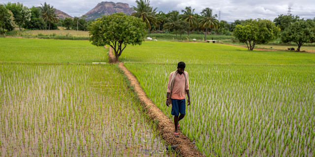 A farmer in a rice field in southern India in September 2022. Rafiq Maqbool / AP