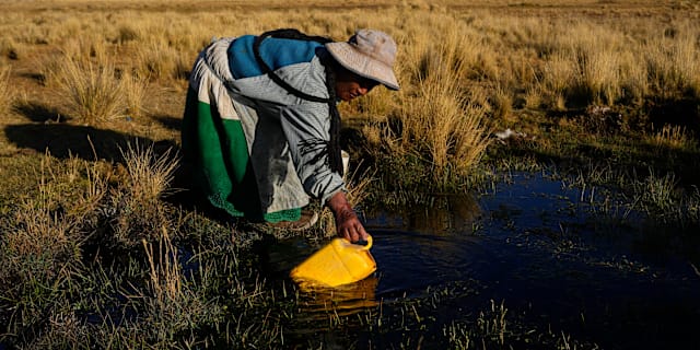 Martha Mamani fetches water from a natural spring in El Alto, Bolivia. Juan Carita / AP
