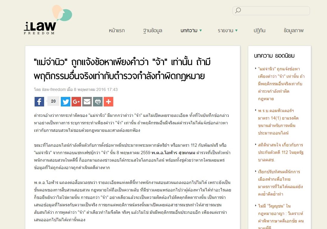 ผมว่าเขา typical หรือตามสไตล์รอยัลลิสต์น่ะ คืออยากให้ใช้ 112 อยู่ ใช้ให้หนักๆกับบางคนด้วย แต่เขาก็ยอมรับว่ากรณีแม่จ่านิวนี่มันสะท้อนให้เห็นว่า คสช กำลังใช้แบบ "พร่ำเพรื่อมากมายมหาศาล จนเละเทะ"