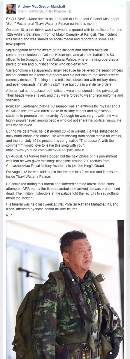 ใครตามอ่านคุณแอนดรู คงเห็นว่า คุณแอนดรูเคยโพสต์เรื่องนี้มาก่อน ทำนองว่า พ.ท.กฤษณพล ไม่ได้ตายเพราะหัวใจวายตามธรรมดา แต่ความจริง ตายระหว่างการถูกเสี่ยจัสตินสั่ง "ซ่อม" ภายในวังทวีวัฒนา ผมเห็นกระทู้คุณแอนดรูก่อนหน้านี้ แต่ไม่ได้แชร์หรือเล่าต่อ เพราะเห็นว่า ยังไม่มีรายละเอียดอะไร เมื่อครู่ คุณแอนดรูได้เขียนเล่ารายละเอียด ผมจึงแชร์มาบอกต่อ
