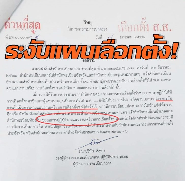 สะพัด! ปค.วิทยุด่วน แจ้งสำนักทะเบียนทั่วประเทศ ระงับแผนเลือกตั้ง