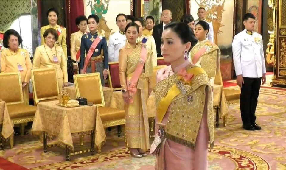 King Vajiralongkorn’s new wife Suthida “Nui” Tidjai and his main concubine Sineenat “Goy” Wongvajirapakdi are both attending the coronation ceremonies along with senior royals.