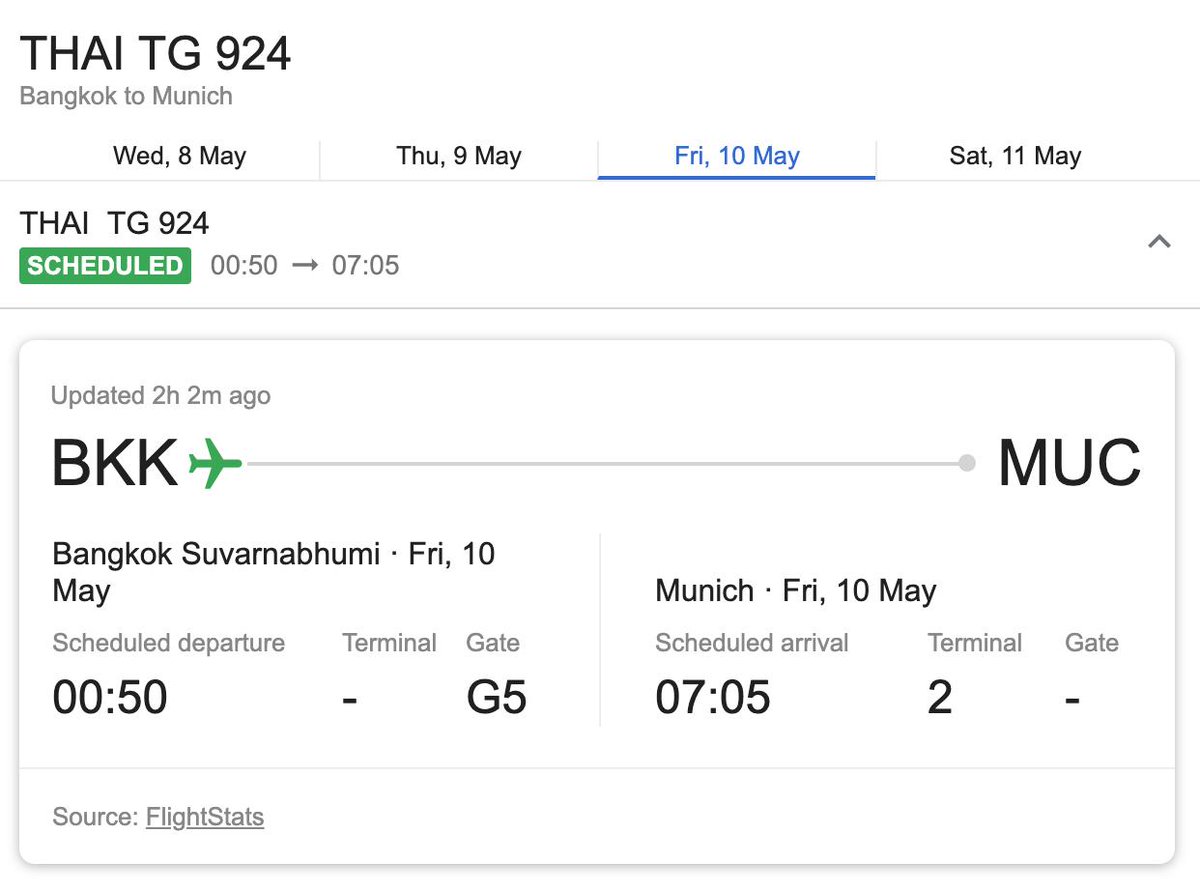 left Bangkok two days ago and returned to Munich via Dubai.