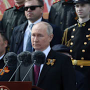 Russian President Vladimir Putin speaks in Red Square during the Victory Day celebrations. During the speech in Moscow, Putin accuses the West of provoking conflicts and spreading Russophobia.