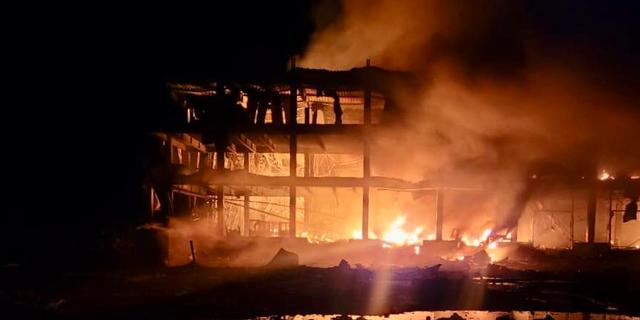 The 1,000 square meter building used to store emergency humanitarian aid was completely destroyed. No Red Cross personnel were injured in the attack.