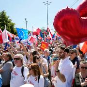 The demonstration was organized by opposition leader Donald Tusk in order to express dissatisfaction with the government's restructuring of the judiciary, which the EU has criticized as undermining democracy in the country.