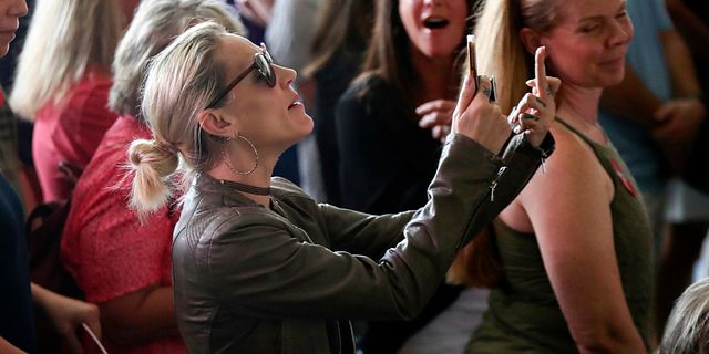 A woman interrupts Ron DeSantis during a campaign rally in Lexington. Artie Walker Jr. / AP