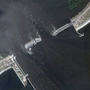The dam after the collapse. MAXAR TECHNOLOGIES / Ritzau Scanpix