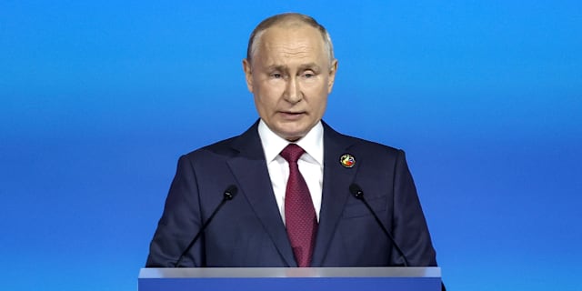 Russian President Vladimir Putin during the opening speech at the summit. Valery Sharifulin / AP