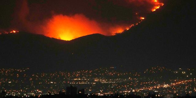 The flames are visible from Mount Parnitha. Thanassis Stavrakis / AP