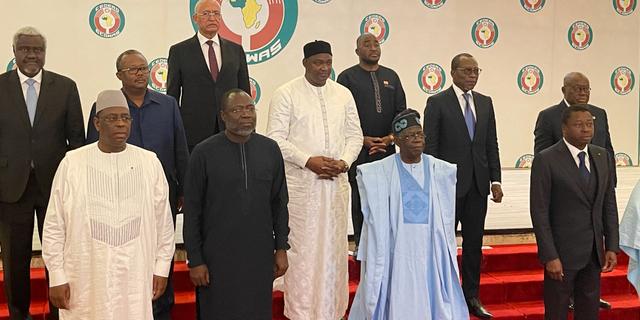 Nigerian President Bola Ahmed Tinubu (second from left) received other West African leaders of the ECOWAS cooperation organization for a lightning meeting in Abuja, Nigeria, on July 30, 2023. Chinedu Asadu/AP